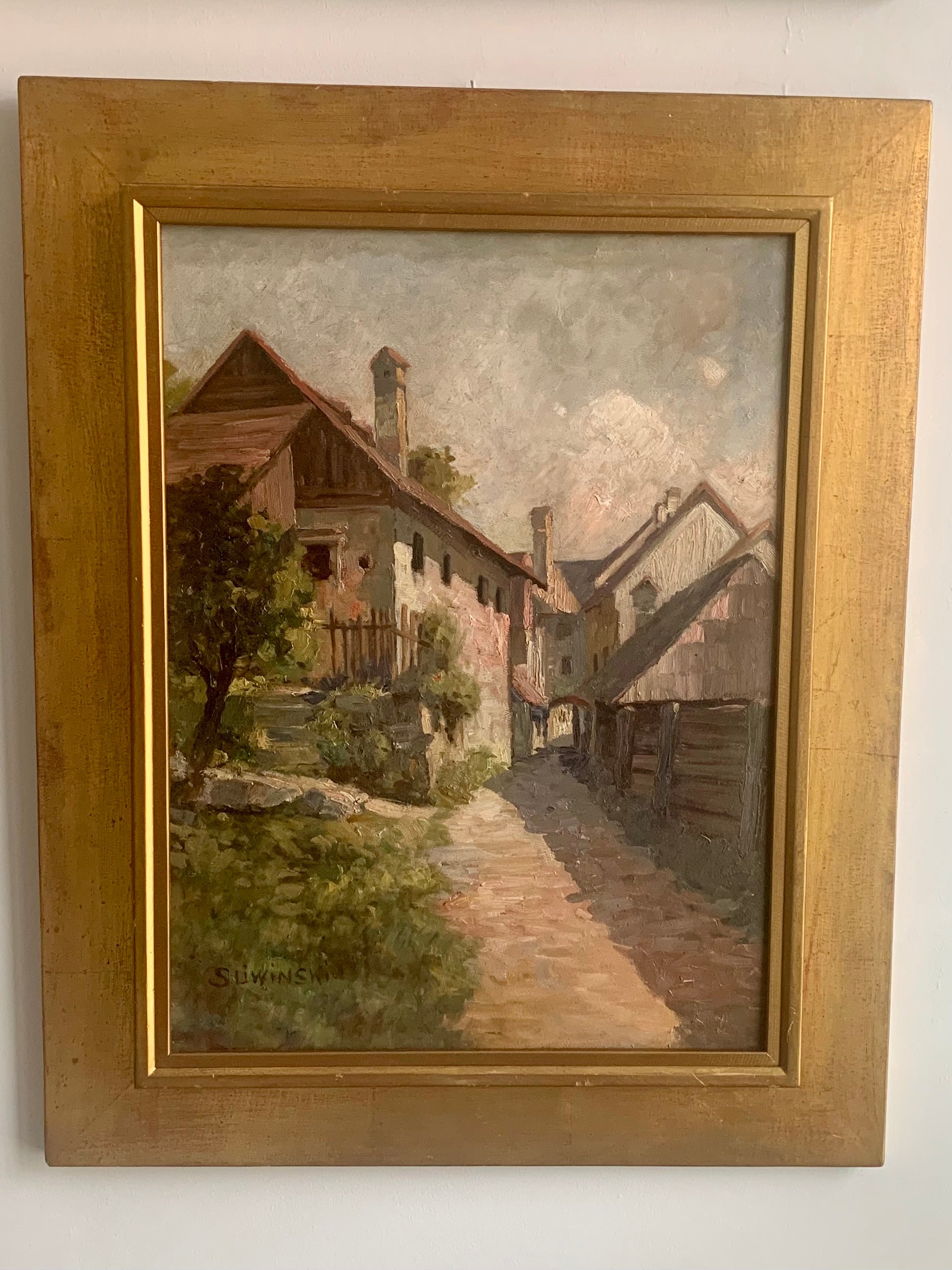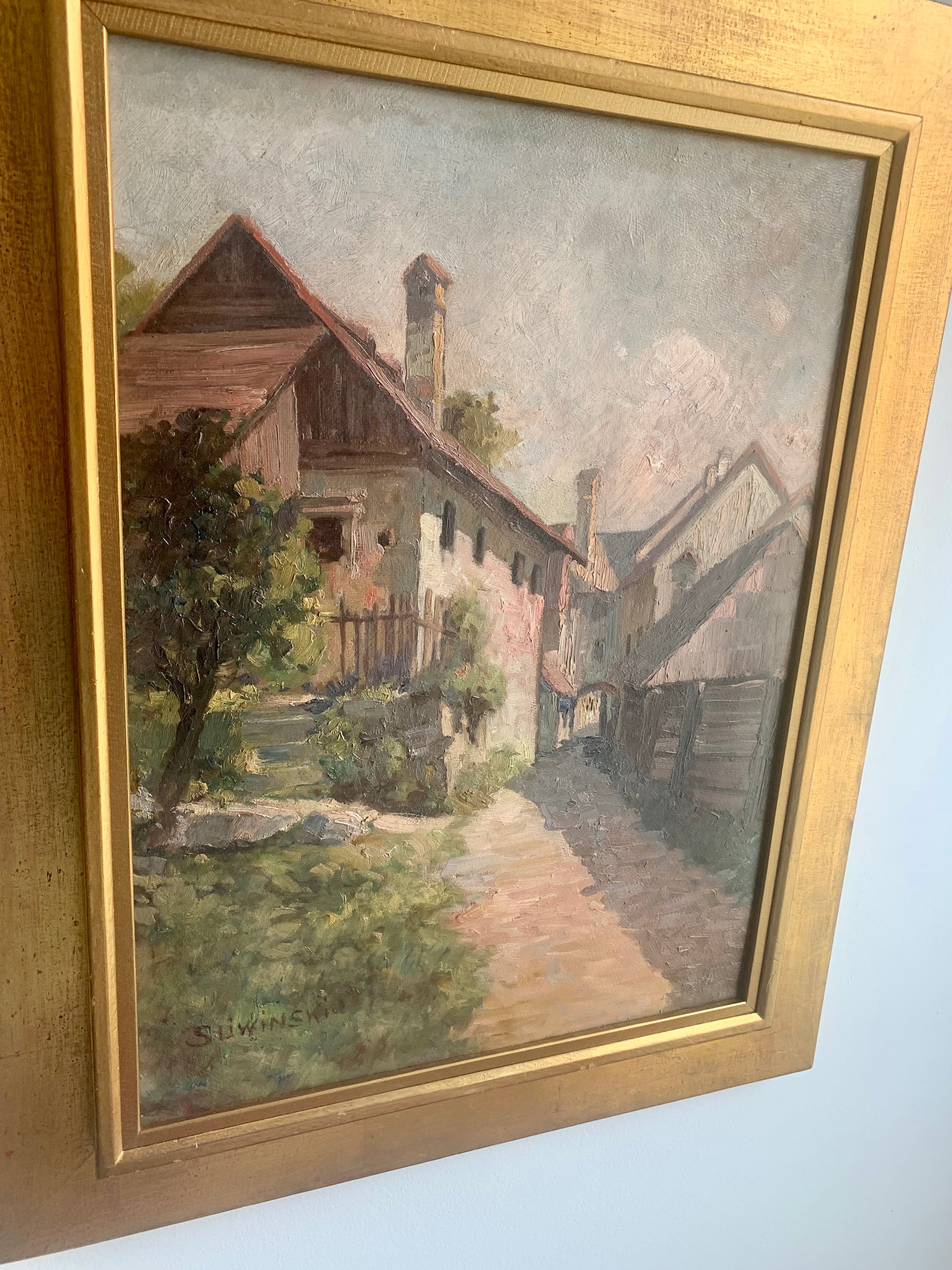 "Dorfstraße" altes Ölgemälde, signiert Sliwiński