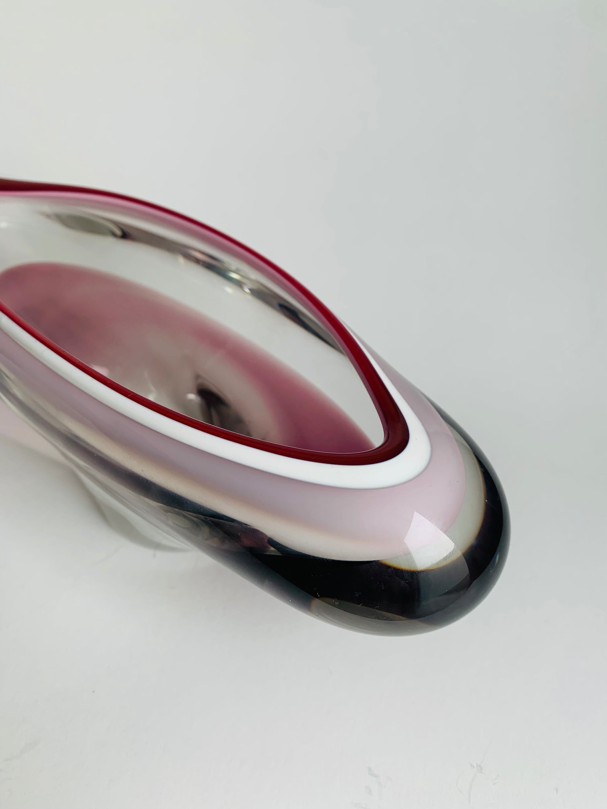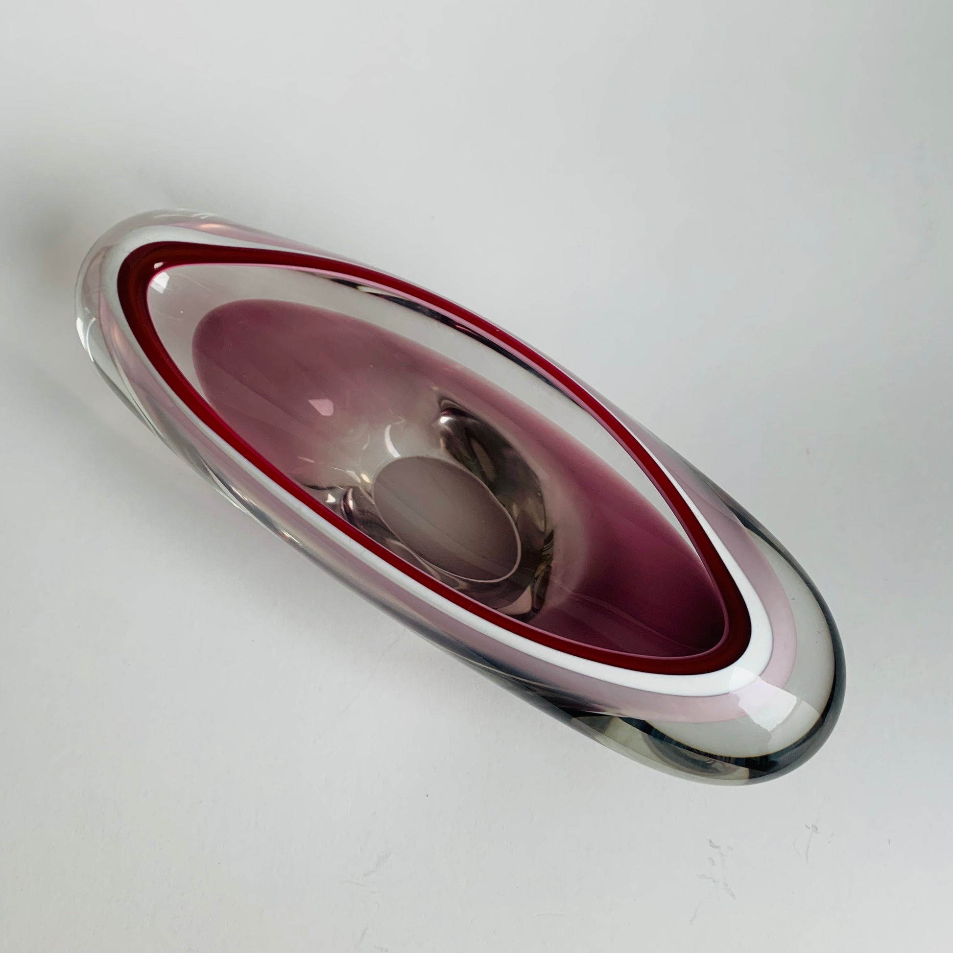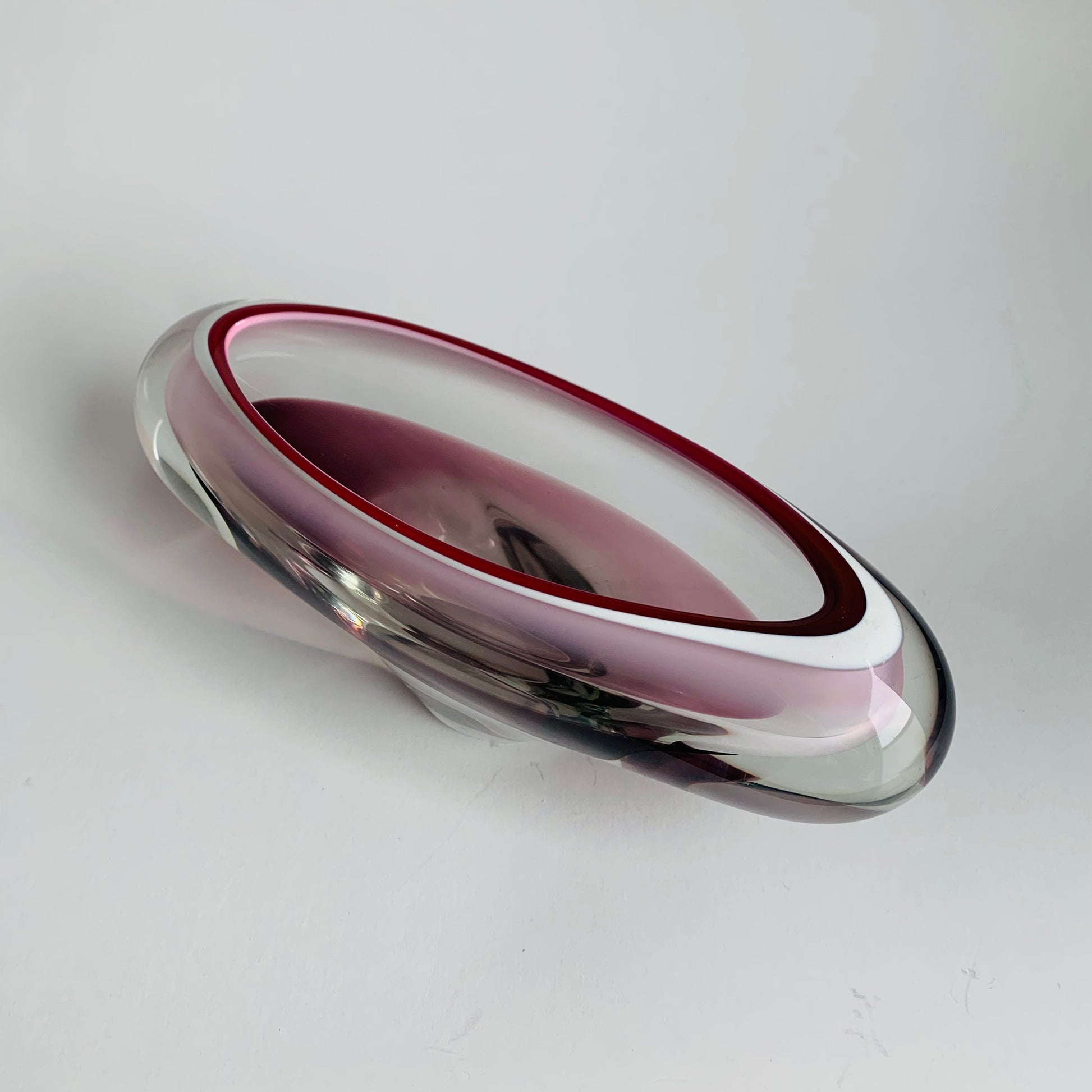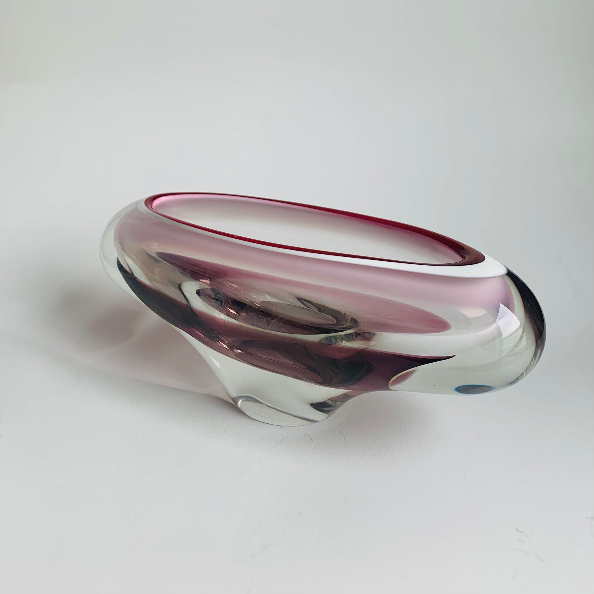 Gefertigt aus massivem Glas mit einem tiefen Rubin- bzw. Kirschfarbton.