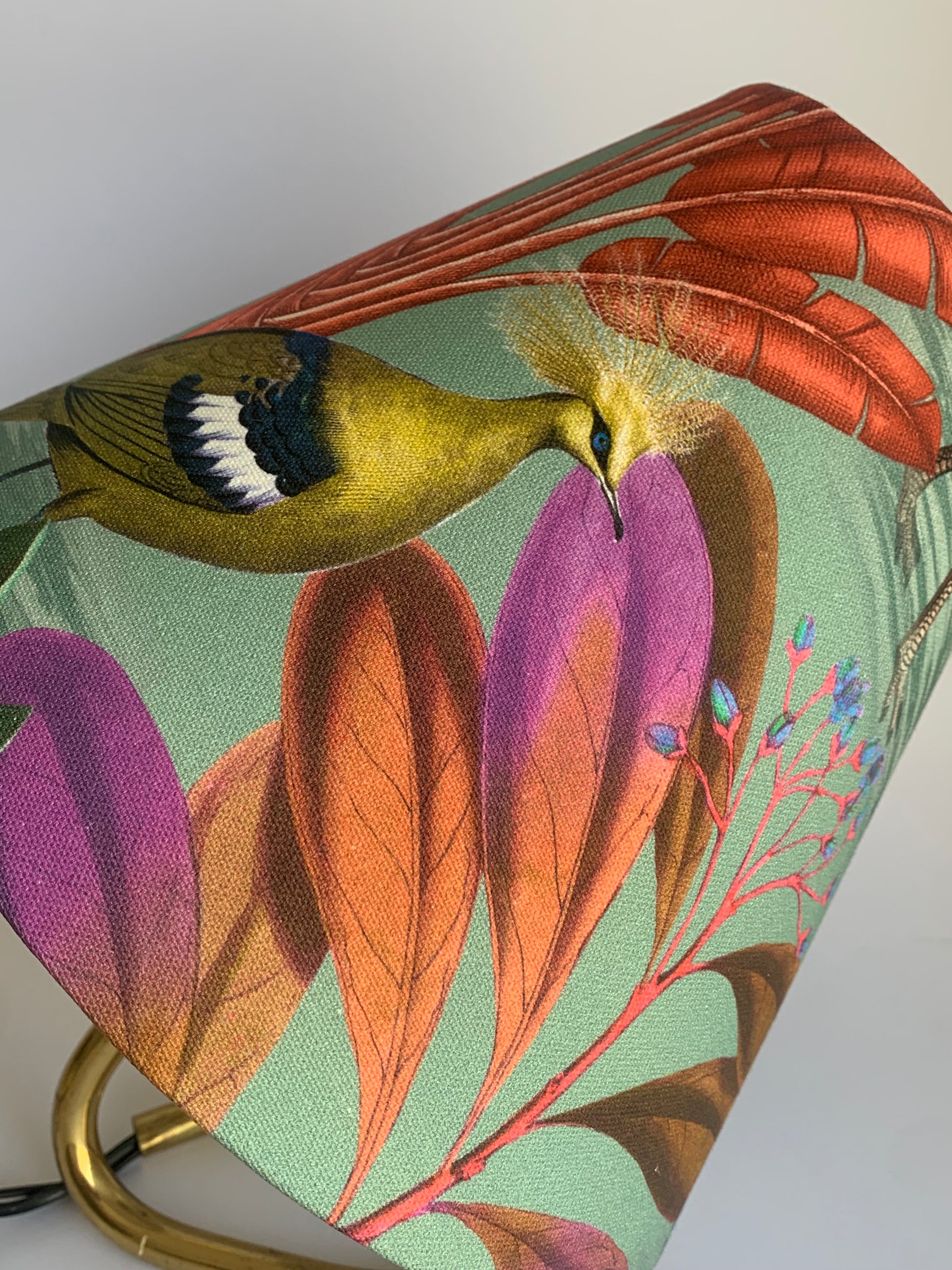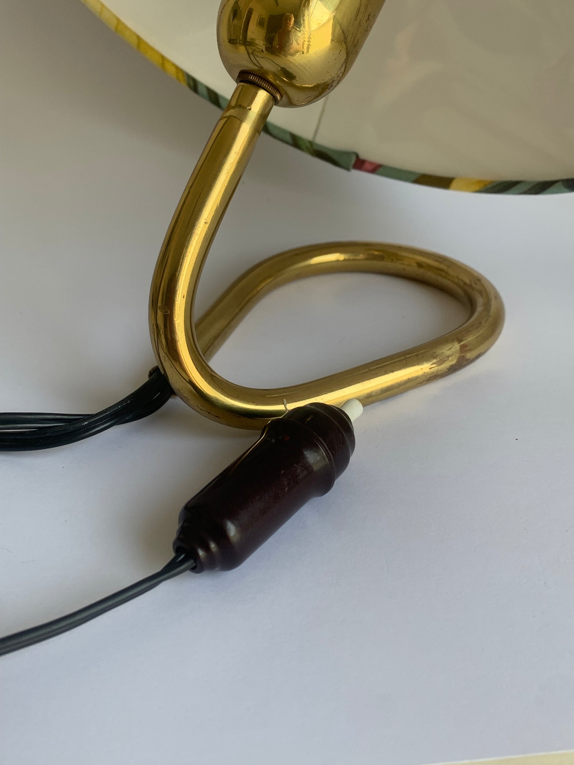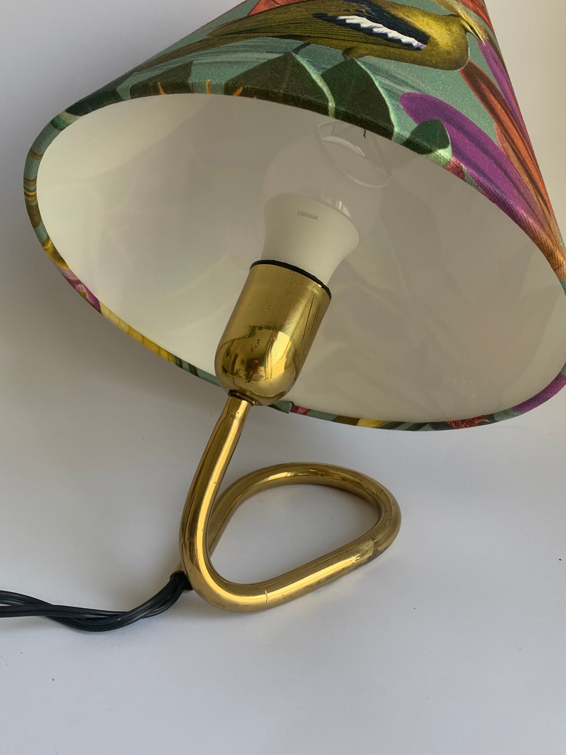Diese elegante Tischlampe aus Messing von J.T. Kalmar wurde in Österreich in den 1950er Jahren hergestelt. Die Lampe wurde mit einem neuen Lampenschirm ausgestattet. Sockel befindet sich im Originalzustand.