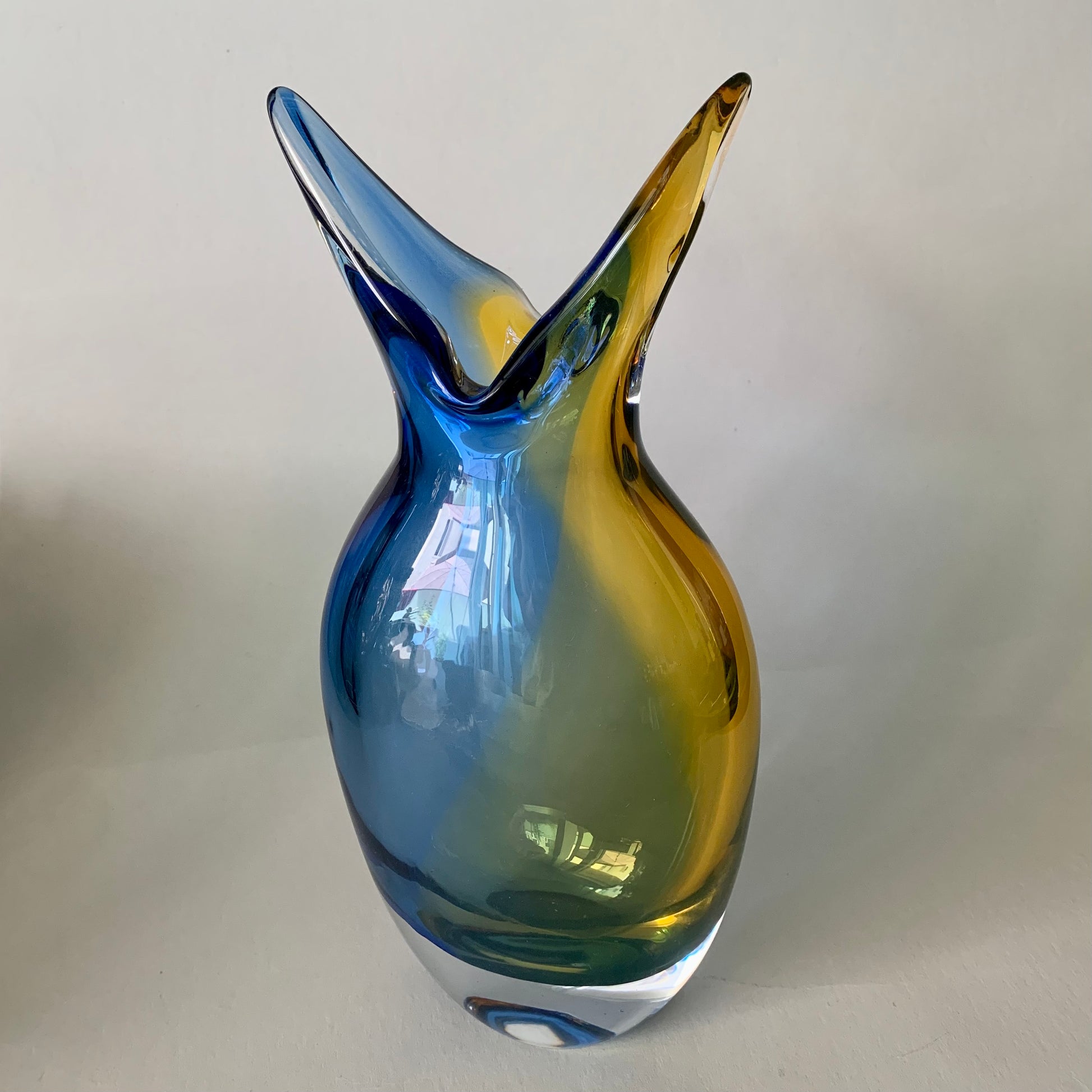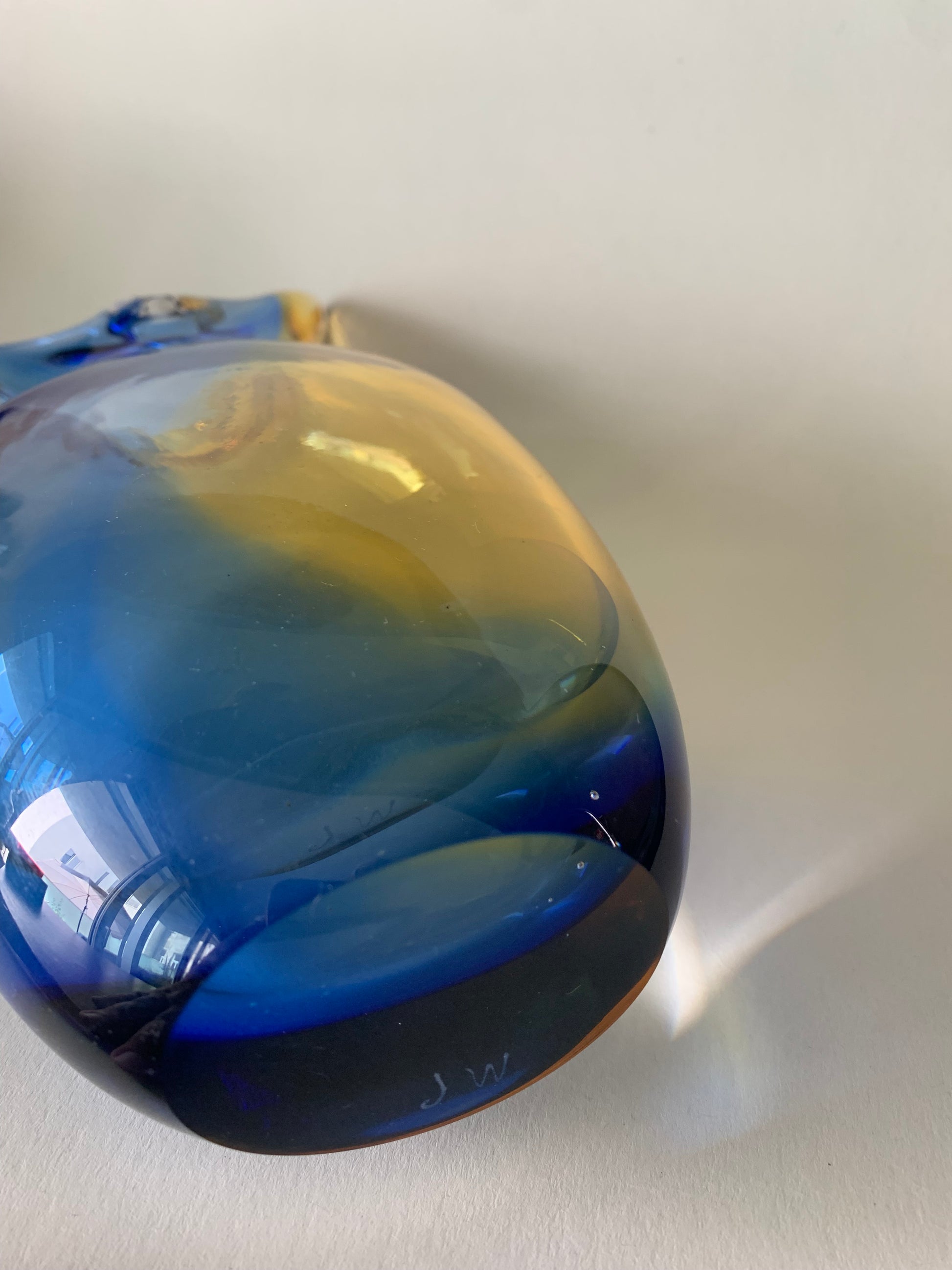Hergestellt aus massivem, schwerem Glas mit intensiver Farbgebung im Glas.