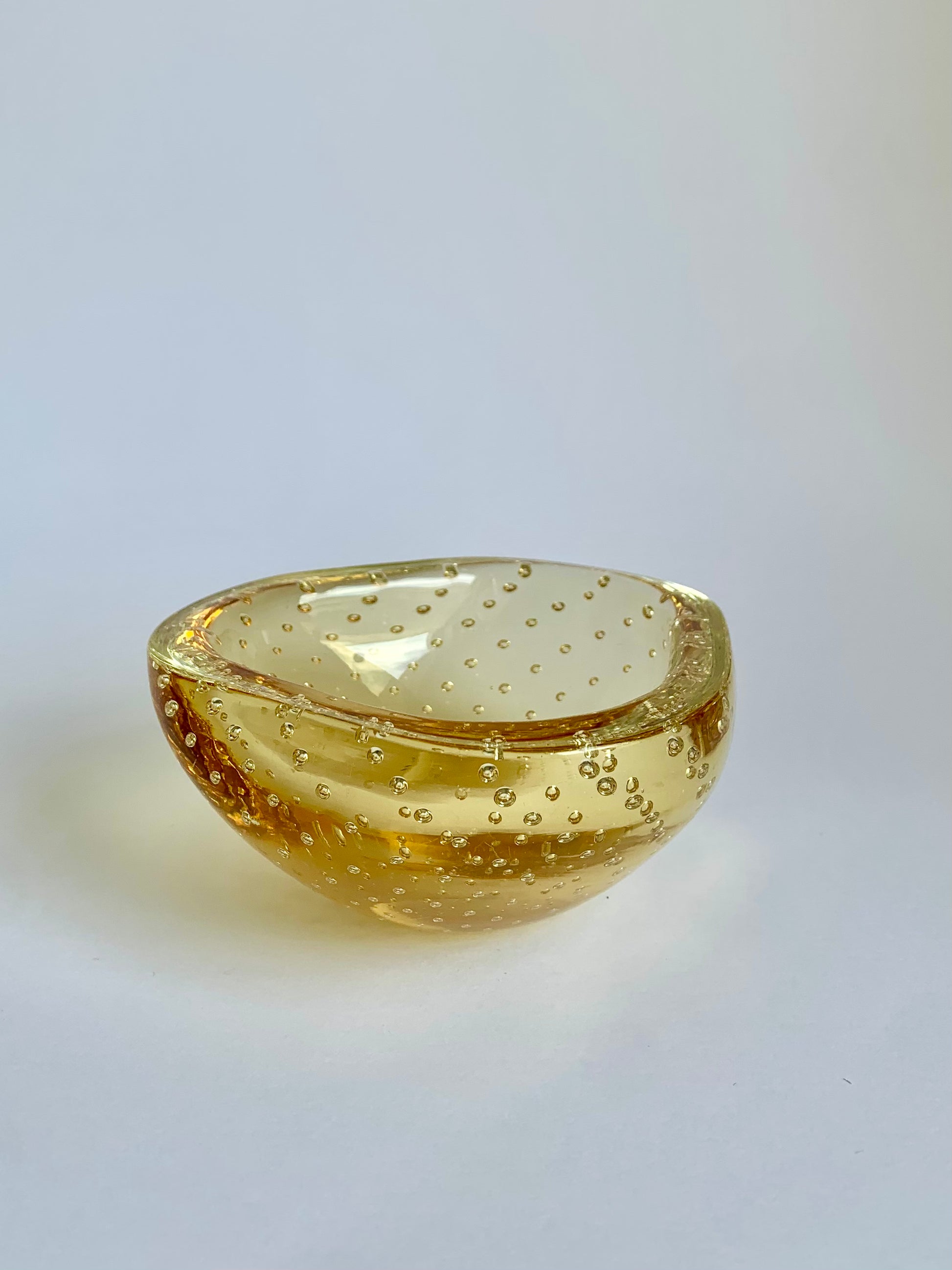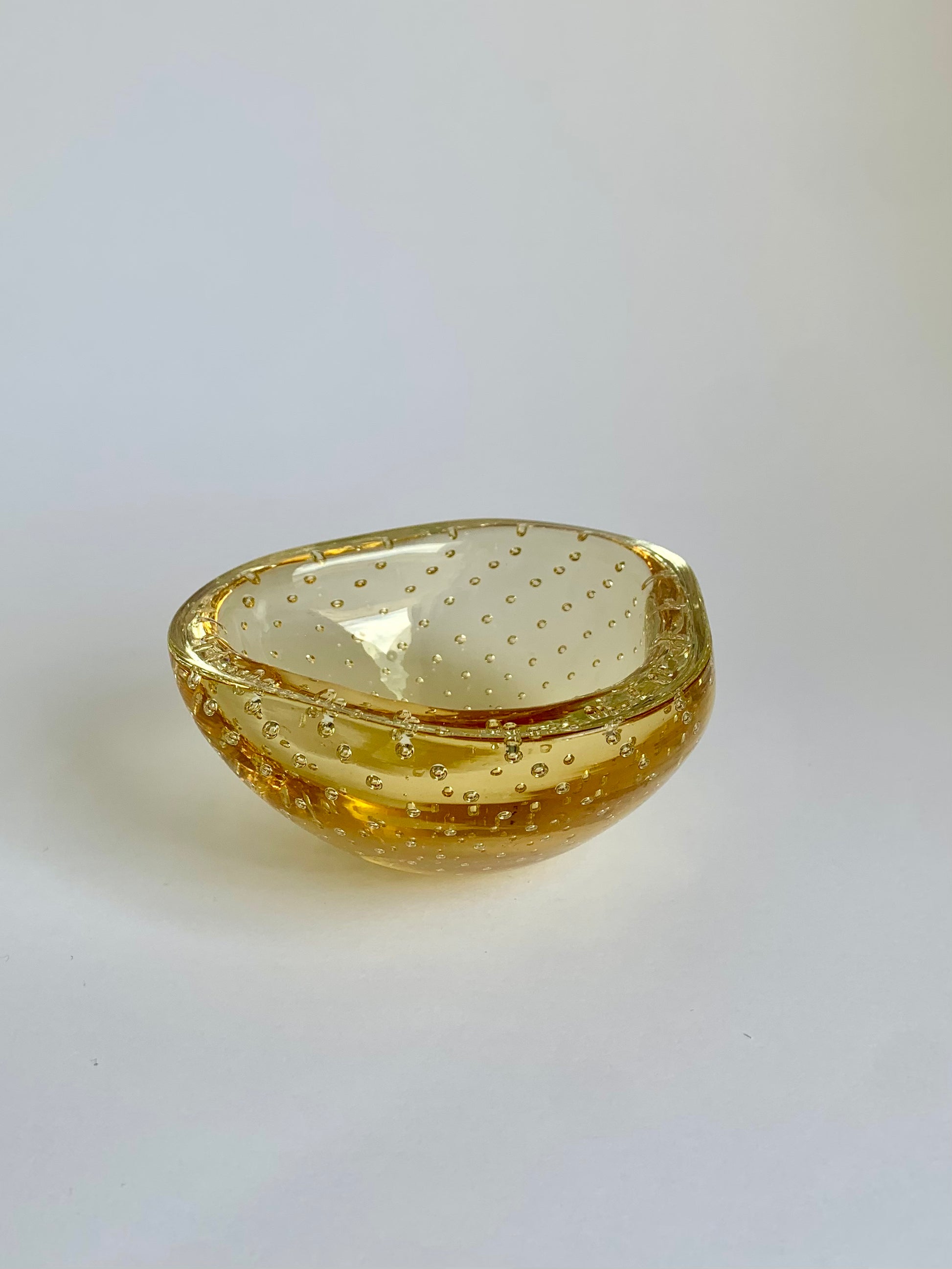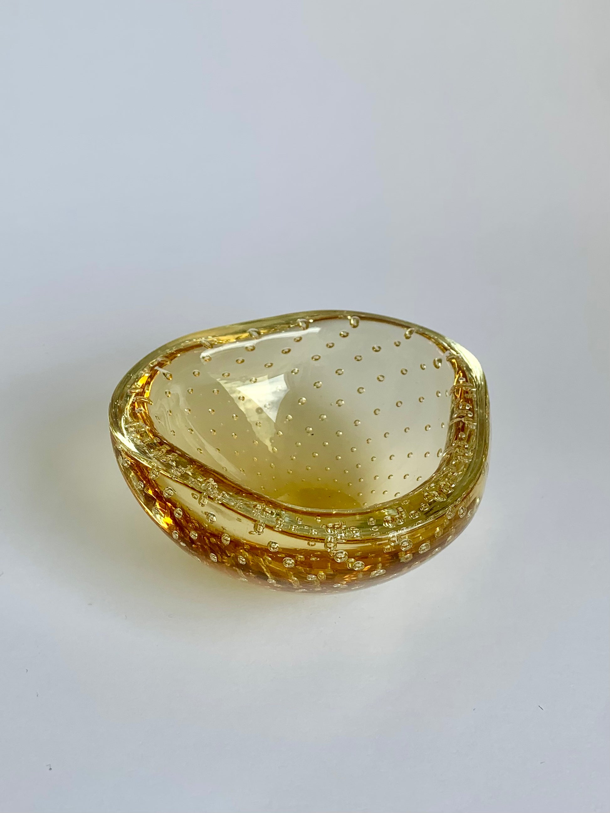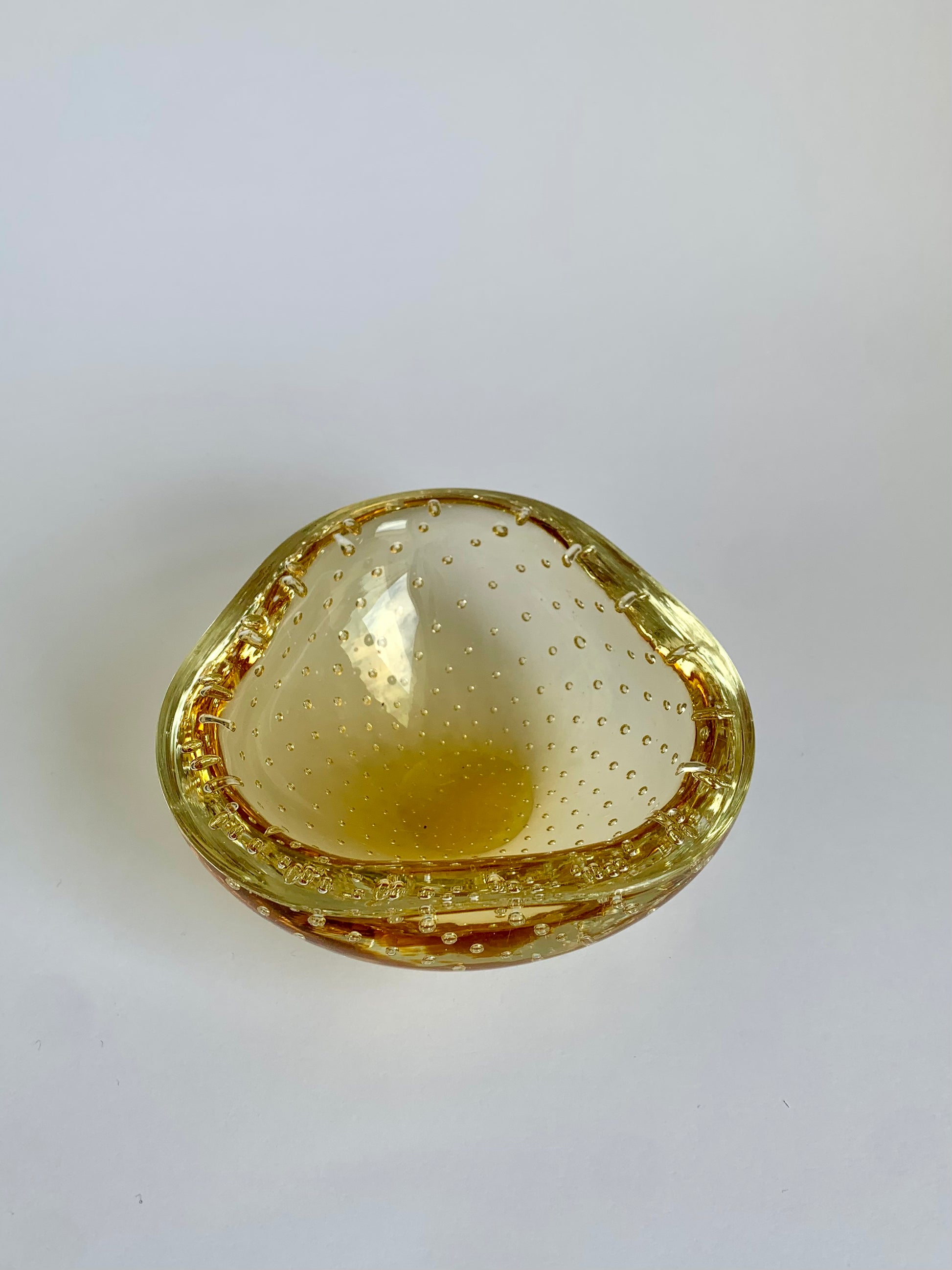 Murano-Glasschale in leuchtendem Gelb. Schwer, kunstvoll gearbeitet und dekorativ.