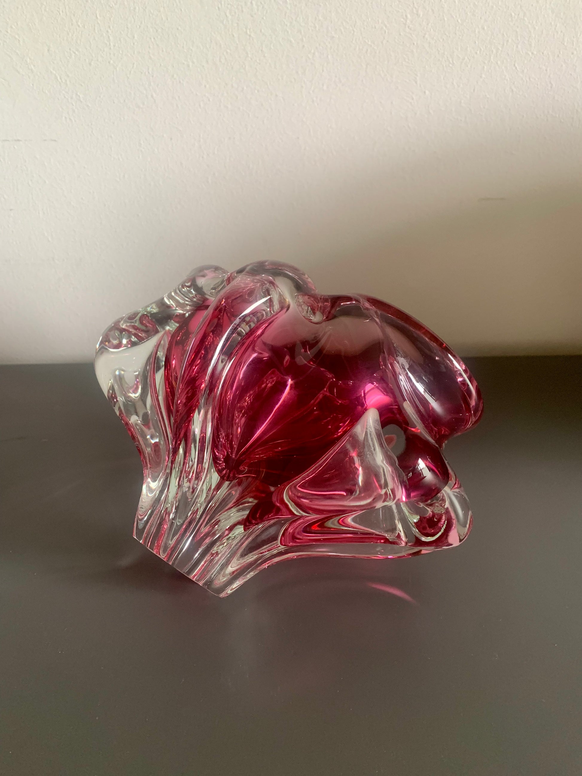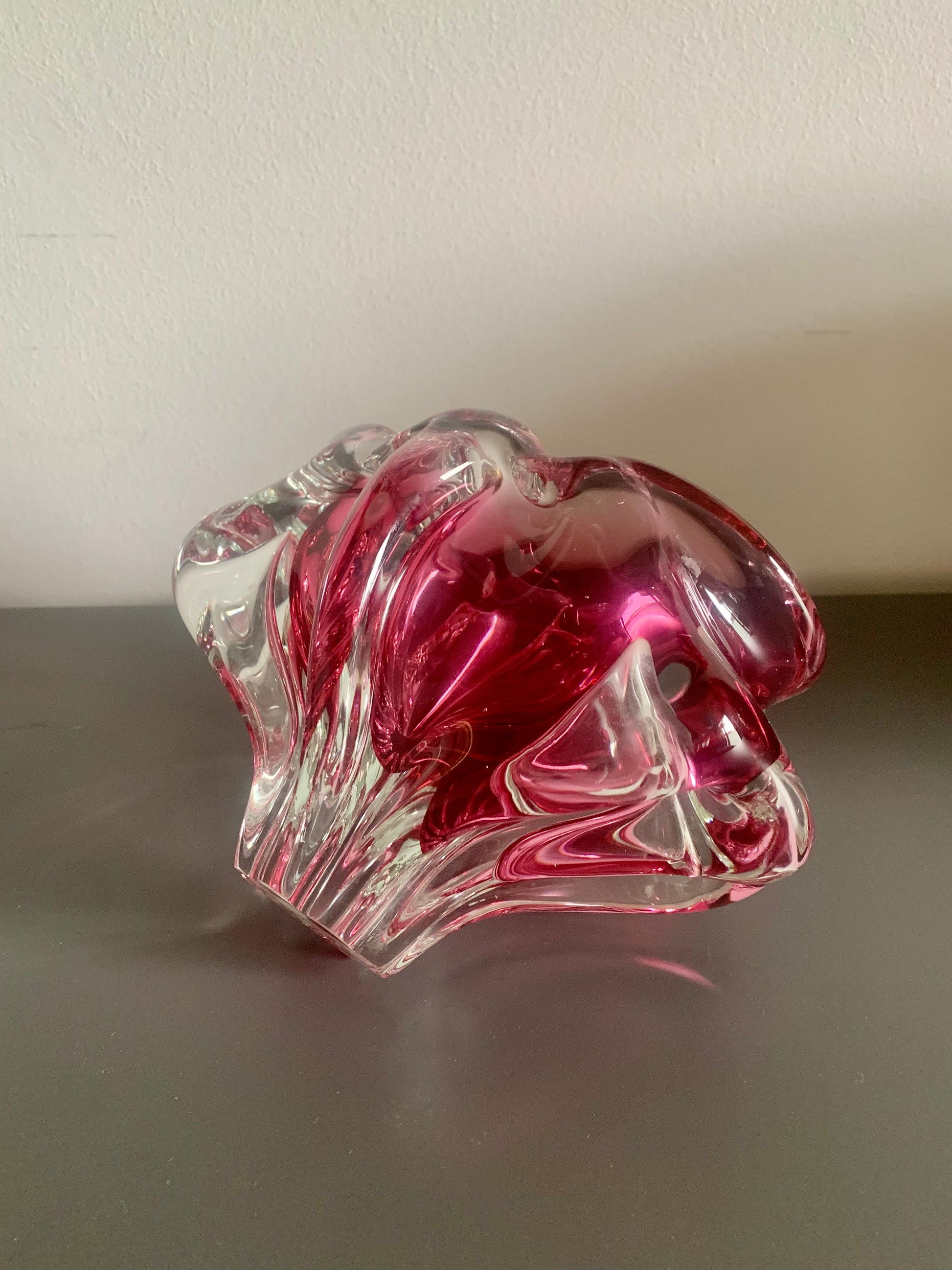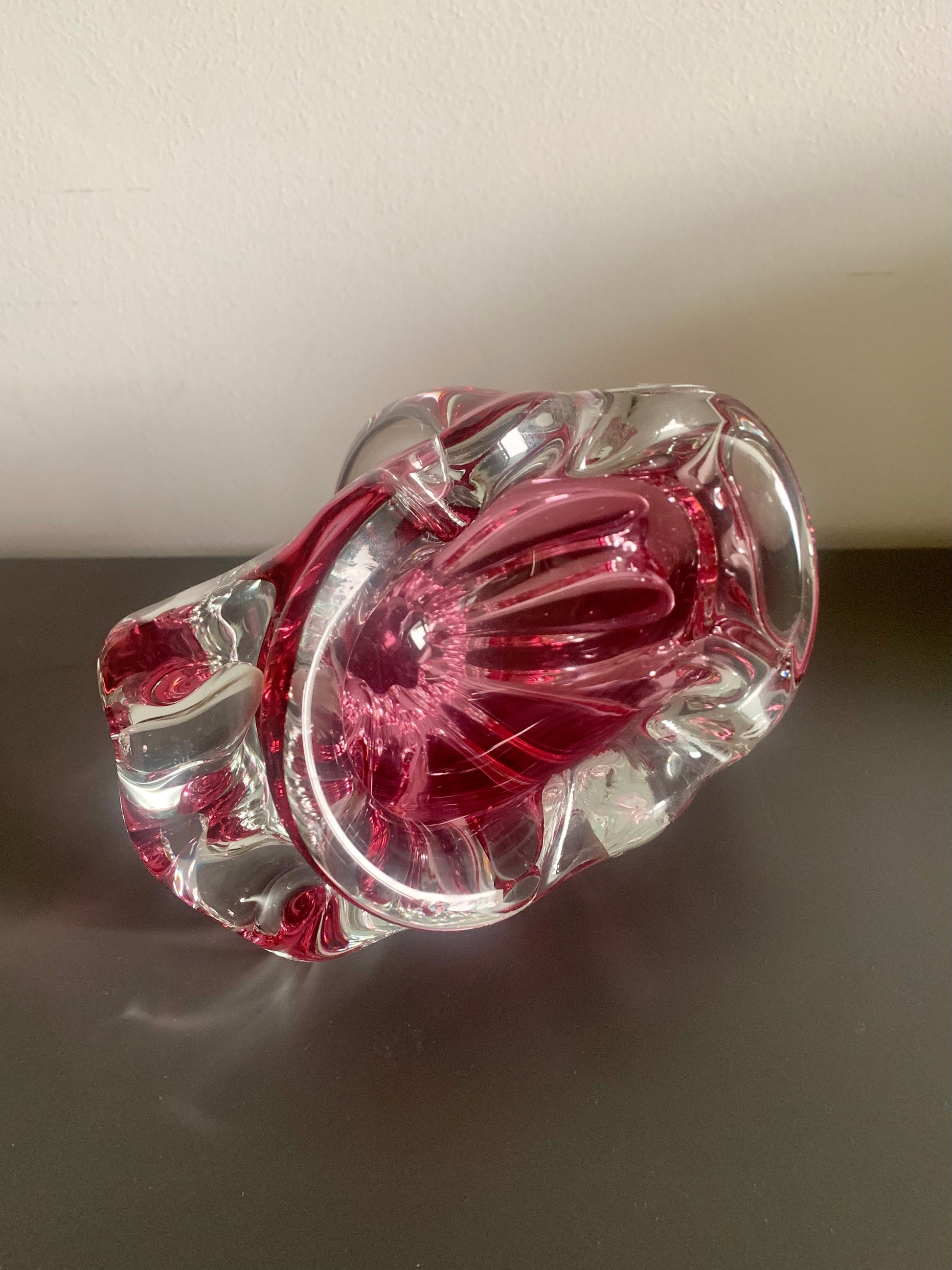 Gefertigt aus formgeblasenem Glas, in der Masse rosa gefärbt.