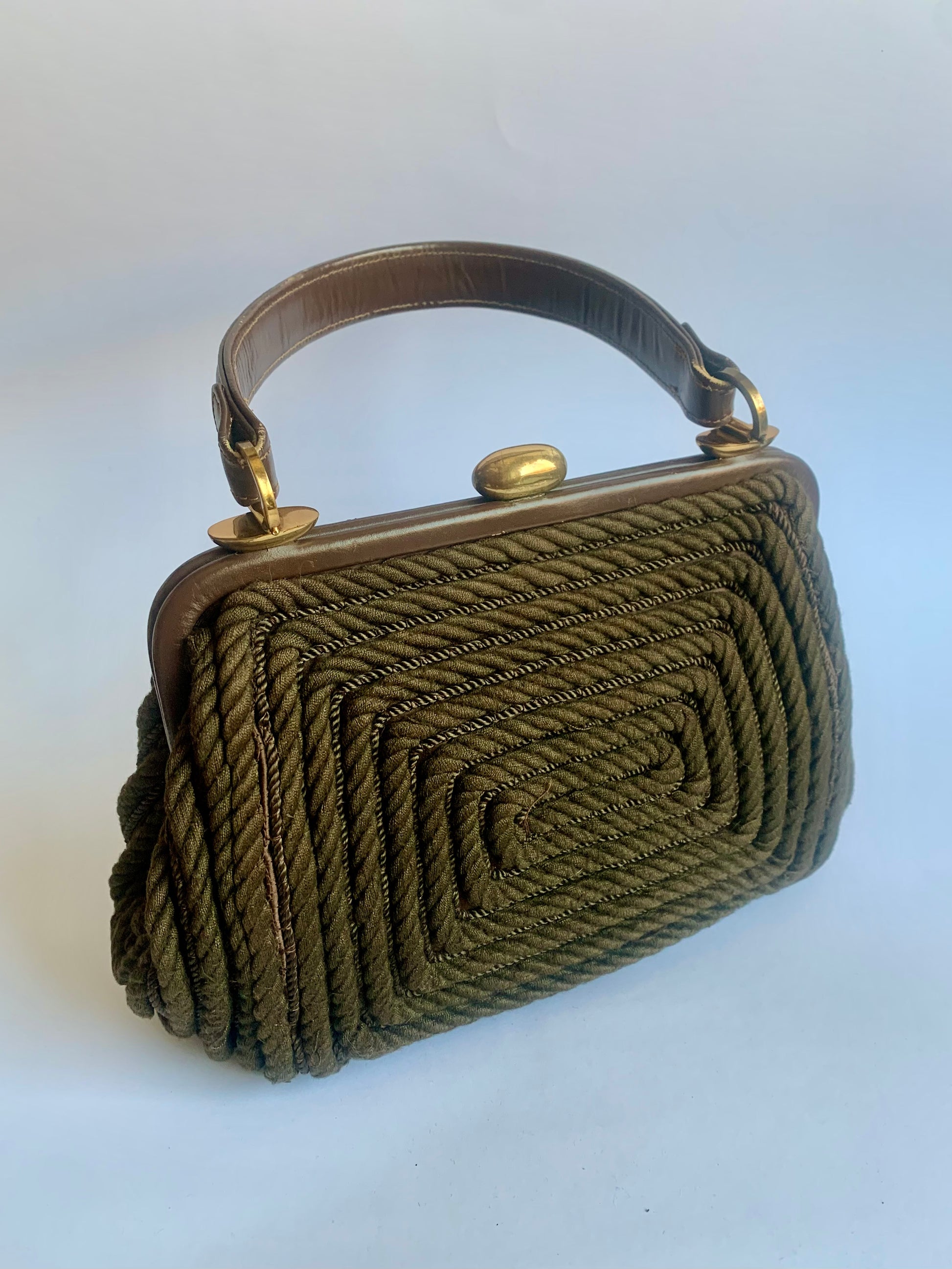 Diese Vintage-Handtasche überzeugt mit ihrem klassischen Design in Dunkelbraun und den typischen Messingdetails.